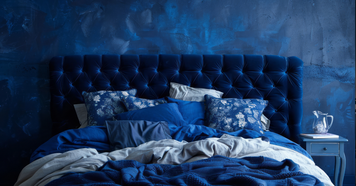 - Dark blue creates a cozy, intimate feeling perfect for bedrooms